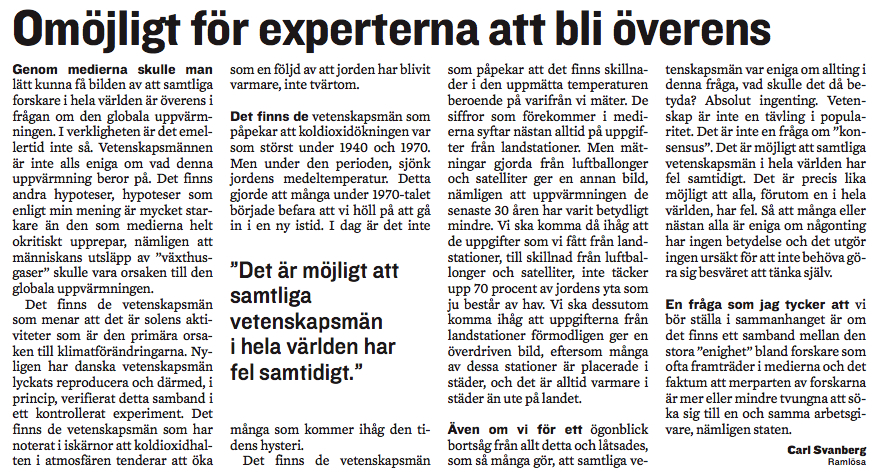 Övrigt Insändare om global uppvärmning november 26, 2006 Carl SvanbergLämna en kommentar Idag kom, till slut, min insändare om global uppvärmning in i HD. Enjoy! Dela detta:Dela Klicka för att dela på Facebook (Öppnas i ett nytt fönster) Facebook Klicka för att dela på X (Öppnas i ett nytt fönster) X Klicka för att e-posta en länk till en vän (Öppnas i ett nytt fönster) E-post Klicka för utskrift (Öppnas i ett nytt fönster) Skriv ut Relaterade